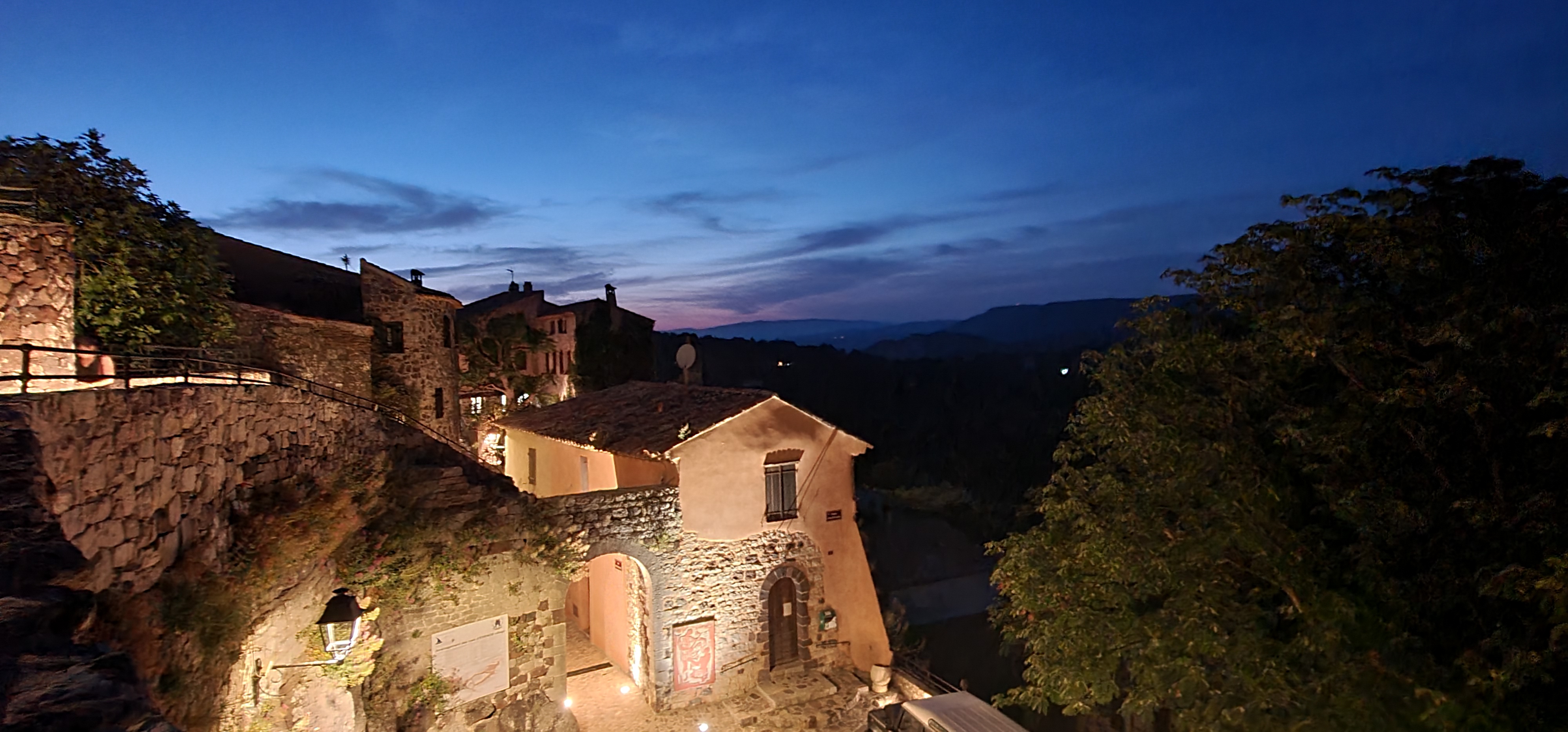 (Ebro en provençal), ce vieux nid d''aigles fait de roches basaltiques renaît lentement de ses cendres autour de son château féodal du Xl siècle. Le hameau, placé sous vocable de St Martin, possède une belle église romane. La belle statue de la Vierge qui domine l''autel reprend les traits du visage de l''impératrice Eugénie. Le chemin de la ronde vous fait découvrir une vue allant de La Ciotat à la rade de Toulon et à vos pieds la profonde faille des gorges d'Ollioules, dont la plus profonde se trouve sur la commune d''Evenos. De nombreux visiteurs apprécient ce site unique dans notre région par son environnement et sa sauvage beauté.